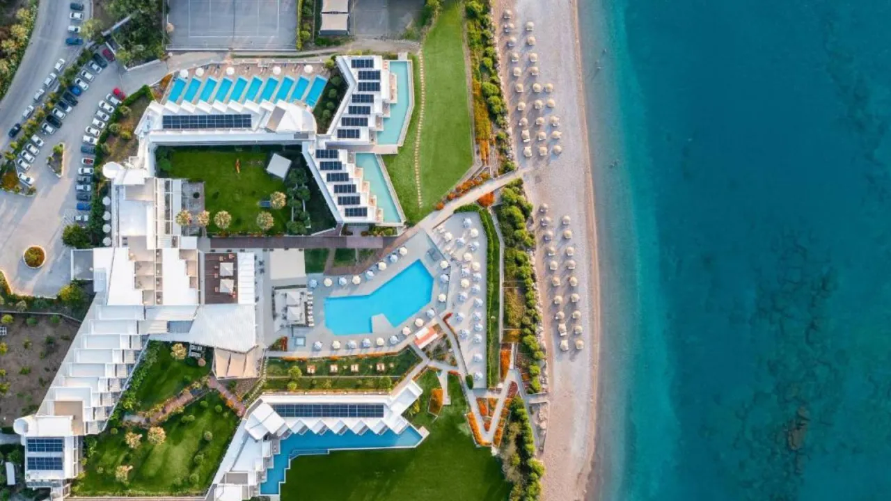 A seaside hotel designed for rest, featuring open spaces, sea views, and all-inclusive comfort.